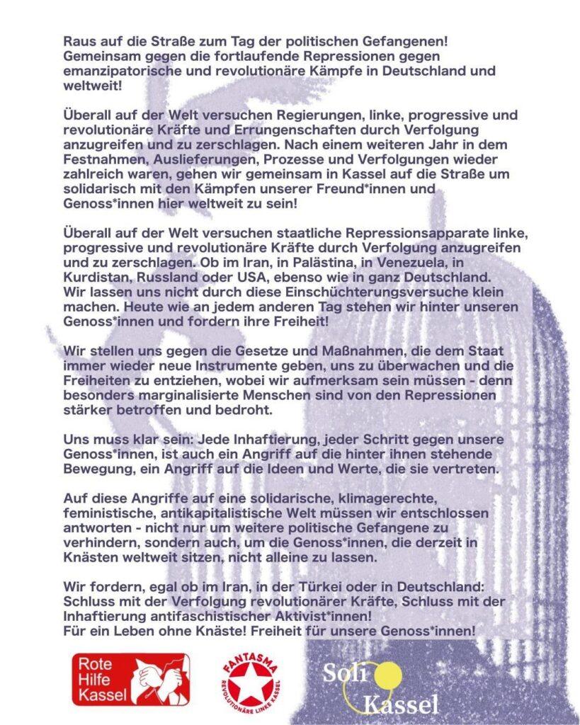 Kundgebung: Heraus mit den Gefangenen! Heraus zum 18. März!